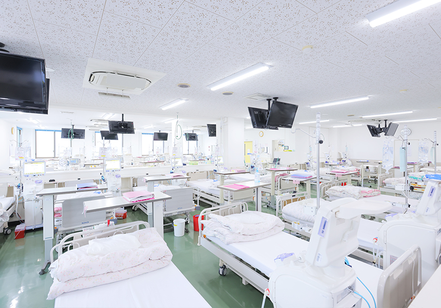 当院透析室では、54台の透析機器及びベッドを設置。 透析治療に関して、患者様の状況に合わせ様々なご提案をさせていただいております。