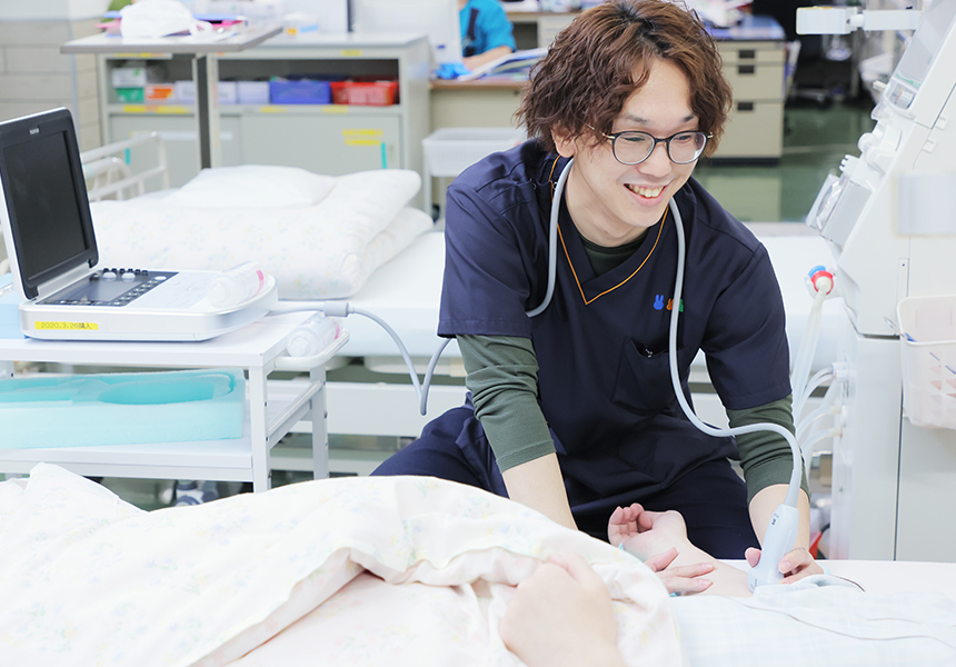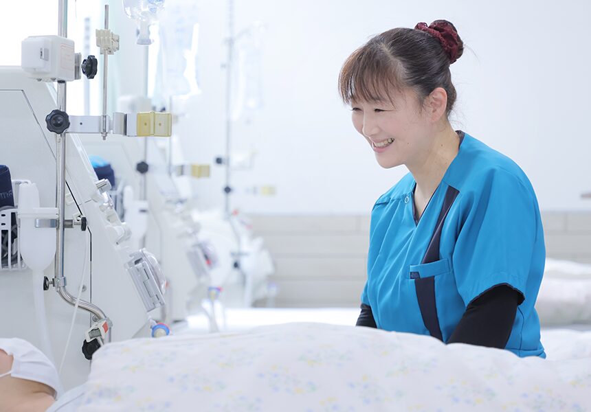 当院では、看護師・臨床工学技士・看護助手や事務員も含めたすべてのスタッフが各々の視点で患者さまと向き合い、精一杯の知恵を尽くして、透析ライフを応援して参ります。